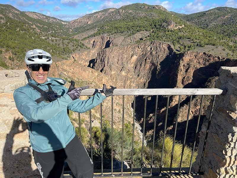 Viramos hacia Urrácal: calles estrechas, pasado morisco y un título de villa (1504) por su adhesión a la campaña de los Reyes Católicos. Pasados unos últimos kilómetros de asfalto, tocamos el Mirador de la Cerrá: bocanada de garganta caliza, cañón profundo, la montaña partida en dos y el Almanzora desplegado en 360°. De esos balcones que te dejan en silencio aunque estés con el pulso alto.