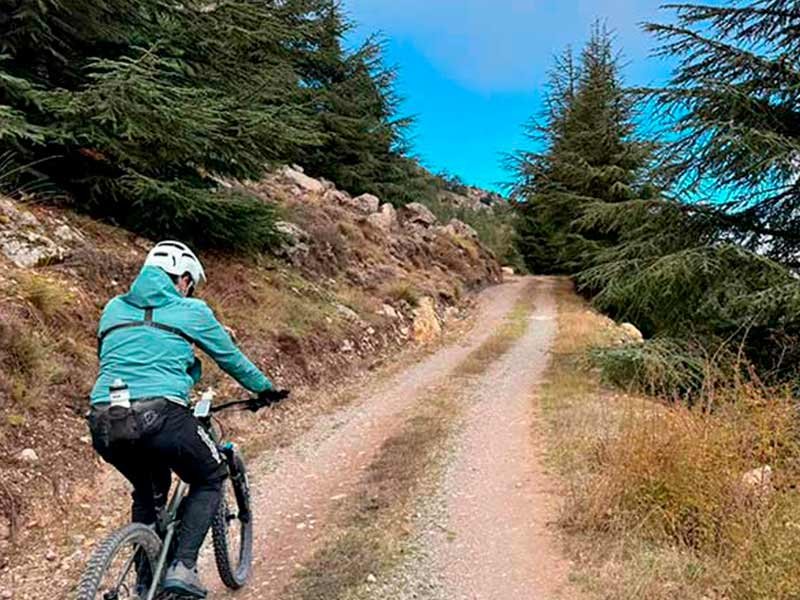 La bajada pide cabeza y frenos frescos. Tramos con firmes removidos por obra y zonas rápidas que invitan a soltar. Nosotros, prudentes: manos frías, vista larga. Puerto de Lúcar, pista principal, Caseta Forestal y a buscar el valle, que ya huele a comida.